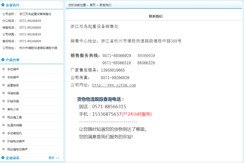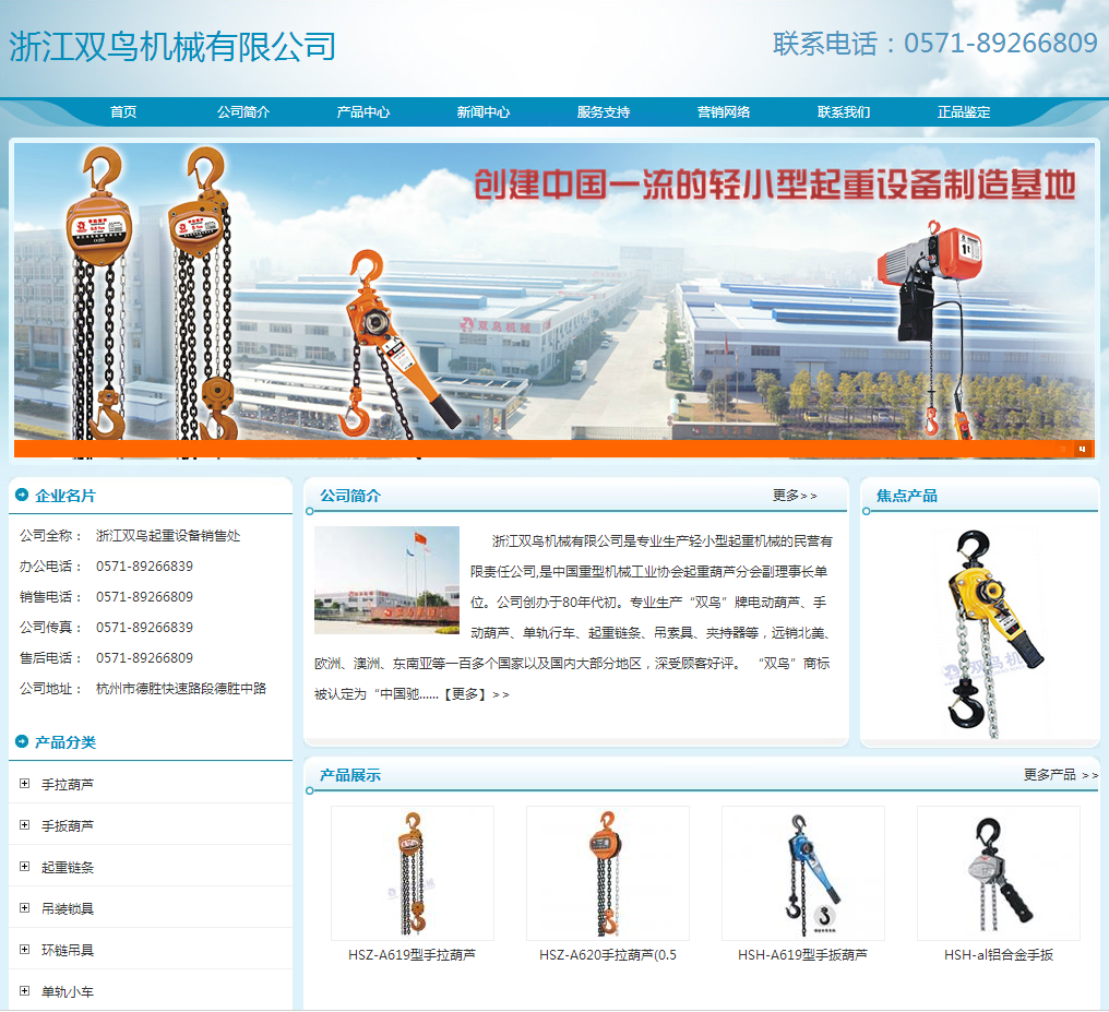 公司網站(www.tbmhoist.com 浙江雙鳥.com 雙鳥機械.com)。 無其它的網站鏈接。