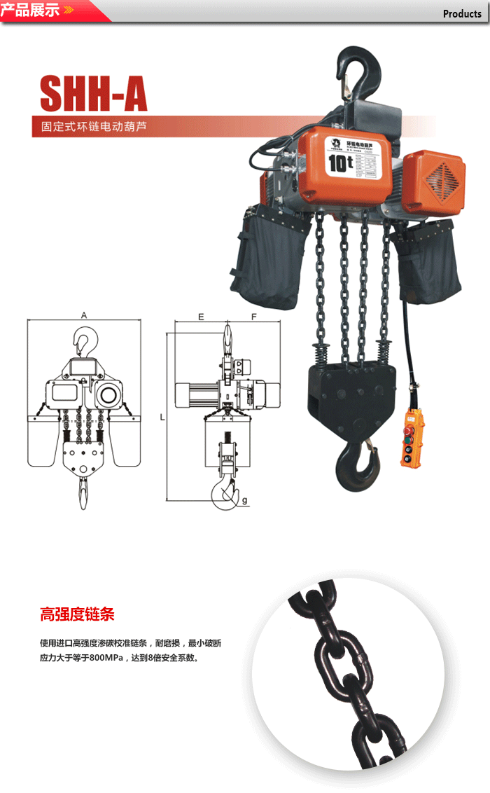 8.起重鏈條是特殊合金鋼制作并經過熱處理,不能私自進行焊接或改裝。